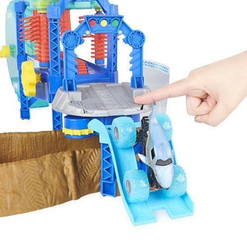 Zajeď do myčky, projeď čistícími kartáči a skoč do teplé vody, kde svůj truck zbavíš veškeré špíny. Pokud chceš auto opět zašpinit, ponoř ho do studené vody a změní svůj vzhled. Součástí balení je kovové autíčko Megalodon měnící barvu. Vhodné od 3 let.