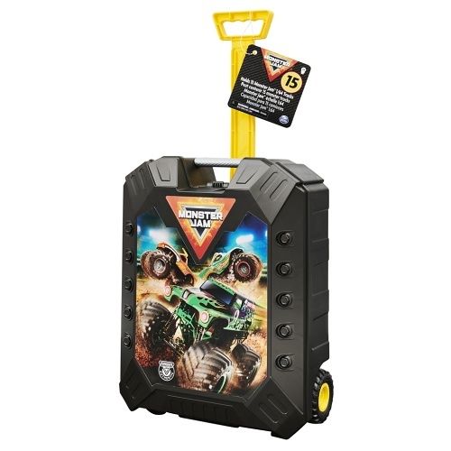 Vezmi své oblíbené trucky Monster Jam kamkoliv s kufrem na kolečkách. Do tohoto černého Monster Jam kufru se vejde až 15 oficiálních Monster Jam monster trucků v měřítku 1:64 z tvé sbírky a ve spodní části najdeš větší prostor pro 3 větší monster trucky nebo tekutý písek Monster Jam DIRT (prodáváno samostatně). Monster Jam kufr na kolečkách je perfektním řešením pro skladování tvých pravých Monster Jam monstert trucků doma nebo na cestách. Ulož si svoje trucky Grave Digger, Megalodon, El Toro Loco, Max-D a ber si je s sebou kam tě jen napadne. Kromě úžasné grafiky a autentického stylu má Monster Jam kufr na kolečekách licencované BKT pneumatiky.
