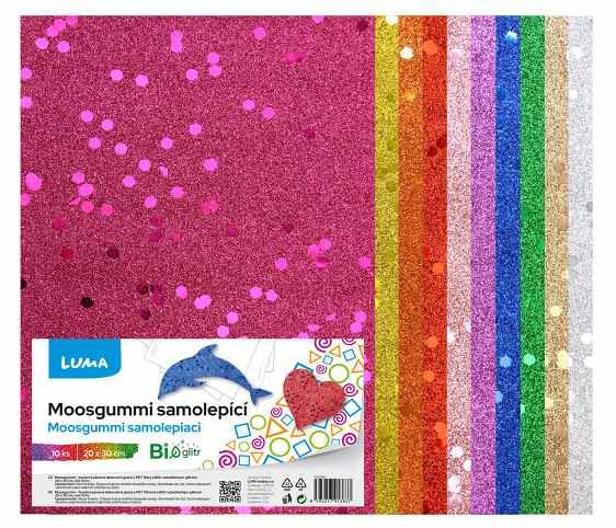 MOOSGUMMI samolepící A4 BIO GLITR s flitry mix LUMA, 10ks