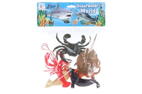 Plastová mořská zvířátka (humr, lachtan, mrož, krab, chobotnice, rejnok). Rozměr zvířátek cca 10 cm (dle druhu). Rozměry balení cca 21 x 27 x 5 cm. Věk 3+