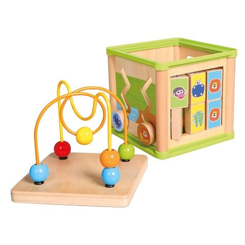 Multifunkční motorická kostka je kvalitní hračkou pro malé šikulky. Díky rozmanitým aktivitám, které mohou děti na každé stěně kostky plnit, procvičují jemnou motoriku ruky, logiku a soustředěnost. Materiál: Dřevo a plast