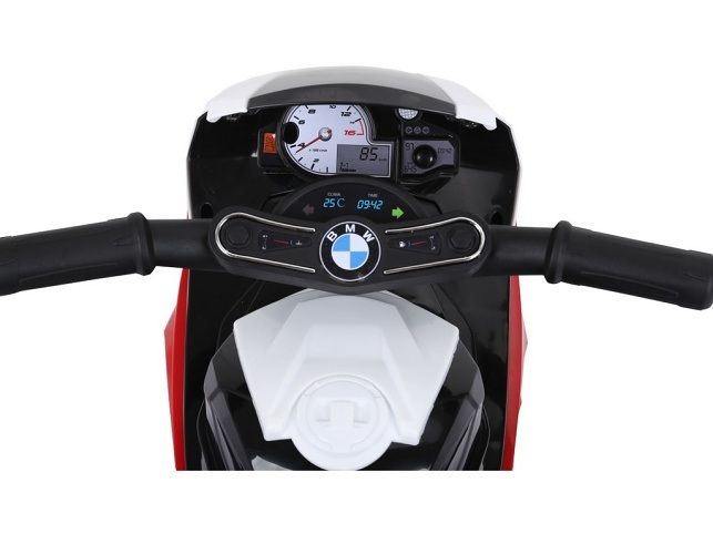 Elektrická motorka s licencí BMW S 1000R obsahuje 1 motor a baterii 6 V/4 Ah. Dětská elektrická motorka s nabíjecím akumulátorem. Nabíjecí doba se pohybuje mezi 8 - 12 hodinami. Po nabití jezdí skútr 1 - 2 hodiny podle způsobu jízdy. Motorka má plastová kola, které zajistí komfortní jízdu. Jízda pouze vpřed. Funkční světlo a hudba. Součástí je návod + nabíječka a samotná baterie. Maximální rychlost 3 km/h. Klíčové vlastnosti:- Licence BMW S 1000RR- 1 motor- Jízda pouze vpřed- Svítí světlo- Hudba- Bez dálkového ovládáníTechnické parametry:- 1 motor- Rychlost: 3 km/h- Baterie: 6 V/4 Ah- Rozměry : 66 x 37 x 44 cm- Nosnost: 20 kg- Pojistka: 10 A- Doba nabíjení: 8 - 12 hodin- Nabíječka: 6 V/500 mA- Doba jízdy: 1 - 2 hod. - Věk: 18 - 36 měsíců
