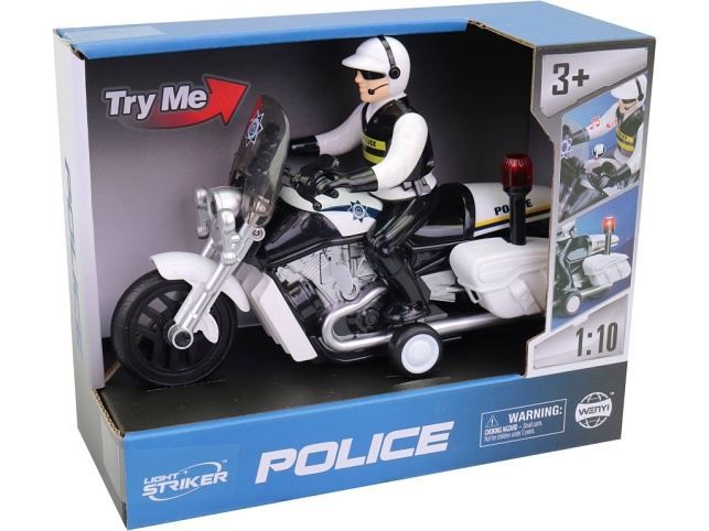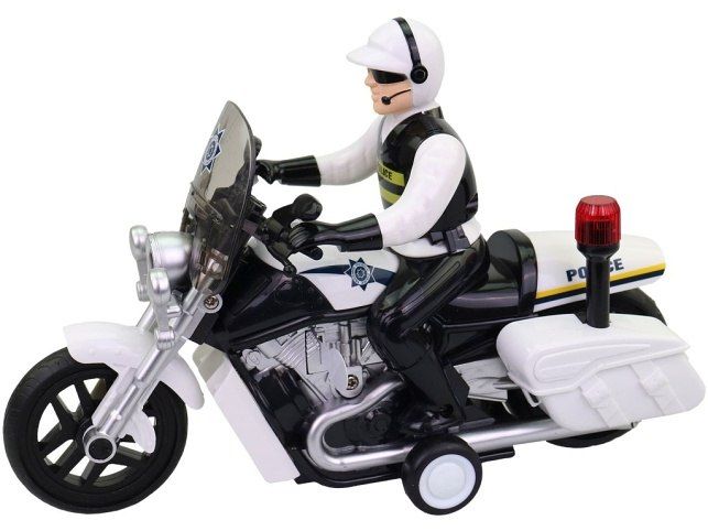 Motorka policejní s řidičem, na setrvačník, se světlem a zukem, 21,3 x 8,1 x 14,6 cm