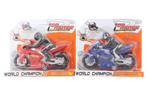 Plastová motorka s jezdcem. Rozměry motorky cca 18 x 9,5 cm. Rozměry balení cca 22 x 19 x 5 cm. Věk 3+