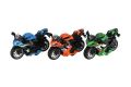 Kovový model krásné motorky s autentickým designem ve třech barevných provedeních. Hračka, kterou ocení každý malý závodník, jezdec, či motorkář. Jezdí na zpětné natažení. Baterie 3x AG3 jsou součástí výrobku.