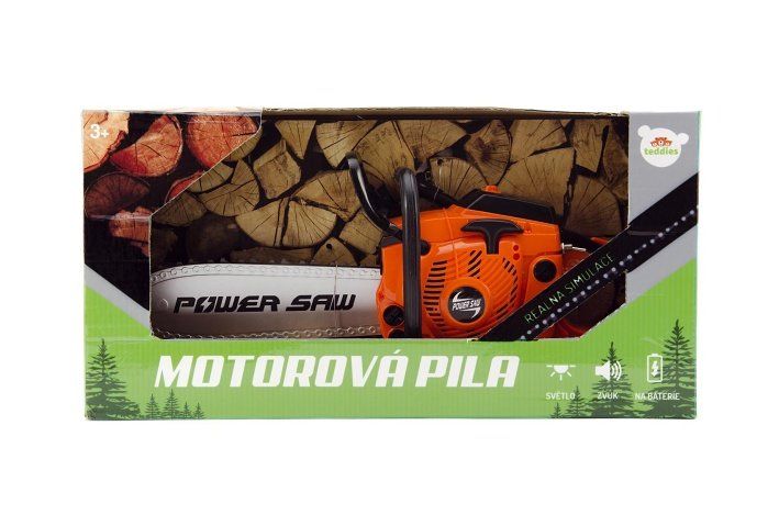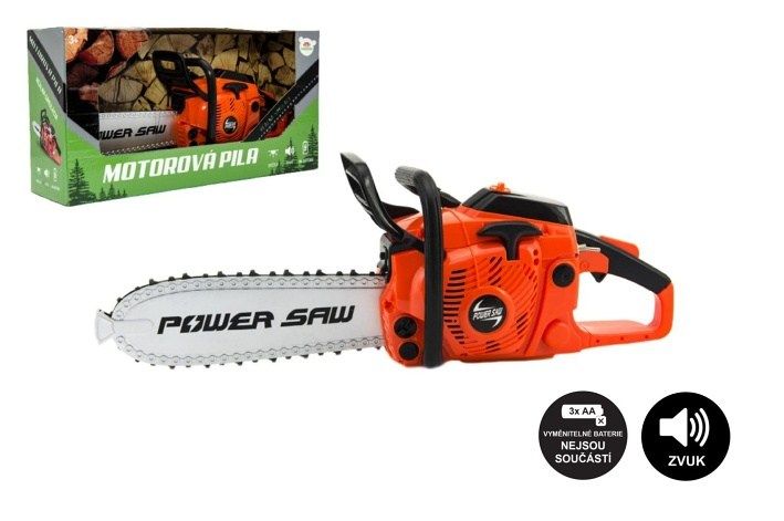 Při práci vydává realistické zvuky a světělné efekty jako skutečná pila při ořezávání stromů a větví. Nastartováním a přidáním plynu se roztočí řetěz, na baterie, v krabici.