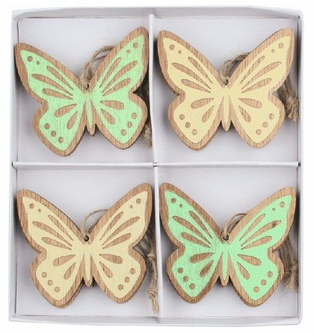 Motýl dřevěný 7 x 6 x 0,5 cm na zavěšení, 8 ks v kabičce