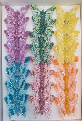 Dekorační motýl na kolíčku o šířce 5 cm. Vhodný pro aranžmá, květinové dekorace, dárkové balení i kreativní tvoření.
