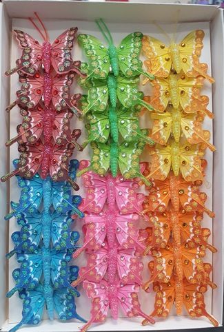 Dekorační motýl na kolíčku o šířce 5 cm. Vhodný pro aranžmá, květinové dekorace, dárkové balení i kreativní tvoření.