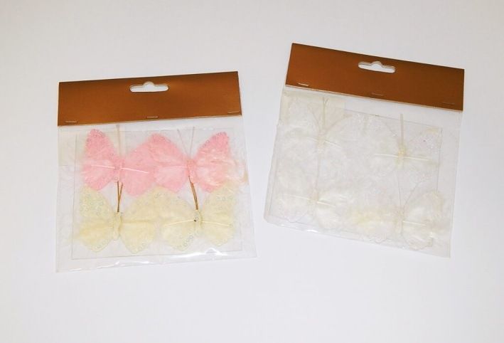 Motýlek s flitry a peřím, s lepíkem 6cm