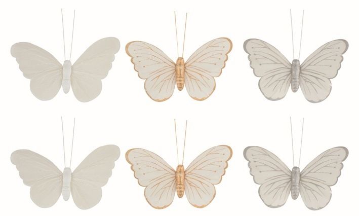 Motýli s glitry na klipu 9,5 x 8 x 2 cm, 6 ks v sáčku