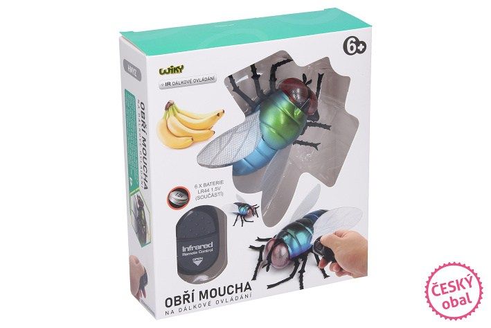 Obří moucha na dálkové ovládání nabízí nikdy nekončící zábavu. Vystraš své nic netušící kamarády. Dej mouchu na tajné místo a zábava může začít.