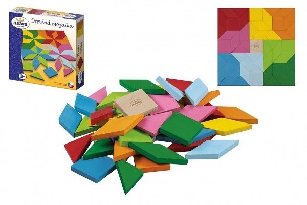 Dřevěná mozaika 49ks, ze které si děti mohou postavit řadu tvarů různých barev. Tato barevná mozaika dětem pomáhá rozvíjet jemnou motoriku a představivost.