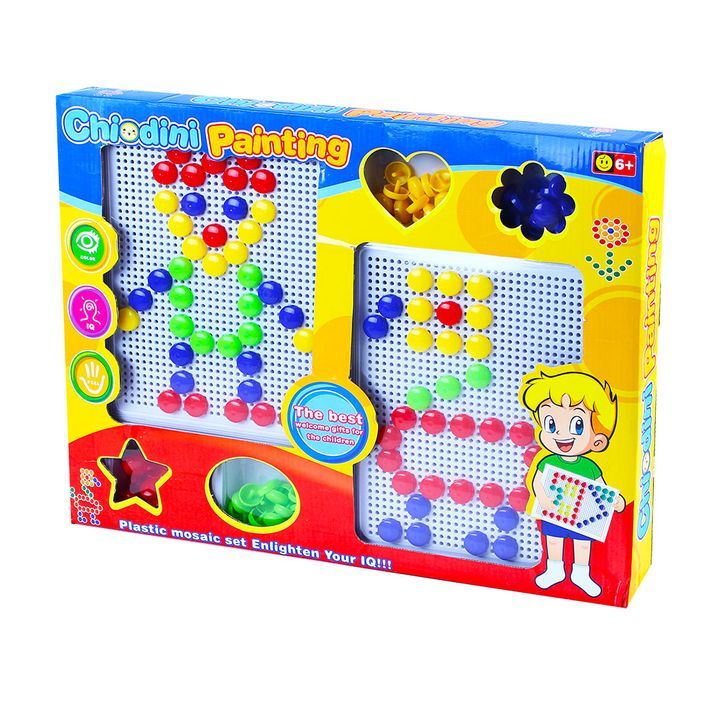 Kreativní mozaika s hříbky zabaví všechny děti! Obrázky můžeš vytvářet dle své fantazie se nebo můžeš inspirovat obrázky na zadní straně obalu. Balení obsahuje hříbky ve 4 různých barvách, které se připínají na základní desky (2 ks) s dírkami. Tato tvořivá mozaika rozvíjí motorické schopnosti a kreativitu dítěte.