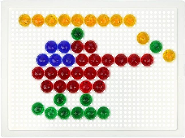Skládej a vytvářej svůj vlastní svět plný krásných obrázků do mřížkované podložky. Poskládej si vrtulník nebo si vytvoř kytičku. Je to jen na tobě. Tvoř znovu a znovu díky 80 kusům plastových hlaviček o průměru 1,5 cm, které na desce umístíš přesně na místo, kam se ti bude hodit!