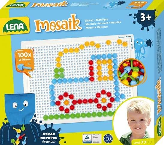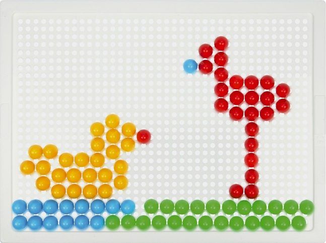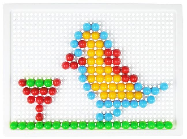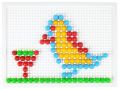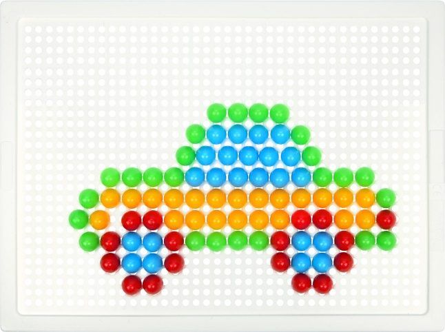 Skládejte barevné kloboučky na podkladovou desku. balení obsahuje 100 ks kloboučků a pytlíček na uložení. Předlohu najdete na zadní straně krabice.