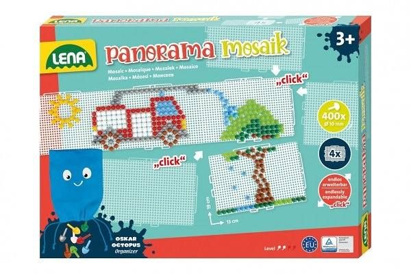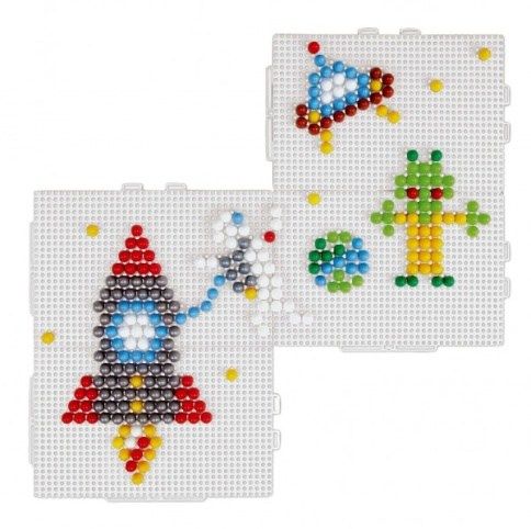4 připojitelné Mosaikové desky s 400ks průhlednými kolíky o velikosti 10mm vč. úložného vaku. Jedna děrovaná deska má velikost: 38,5 x 25,5 cm