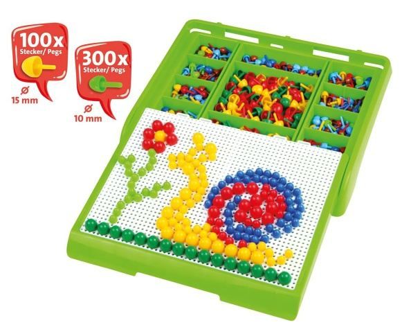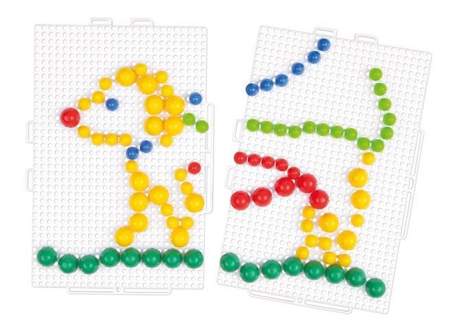 Přenosný úložný kufřík s vysouvacími panoramatickými deskami pro vkládání kolíčků. Kufřík slouží zároveň k uložení kolíčků. Kufřík obsahuje 300ks barevných kolíčků 10mm a 100ks barevných kolíčků 15mm.