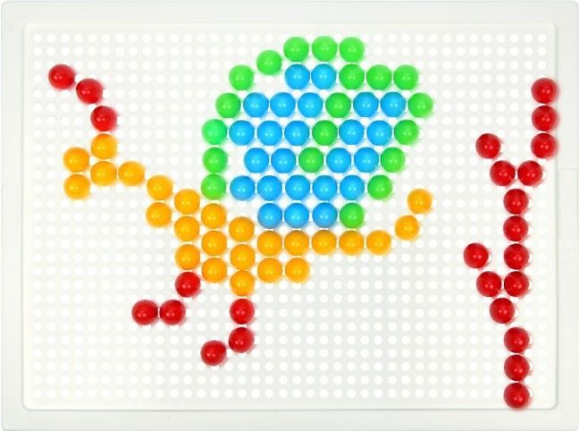 100 kusů hladkých barevných kloboučků o velikosti 10mm balených v plátěném pytlíčku. Velikost děrované desky 21×16cm.