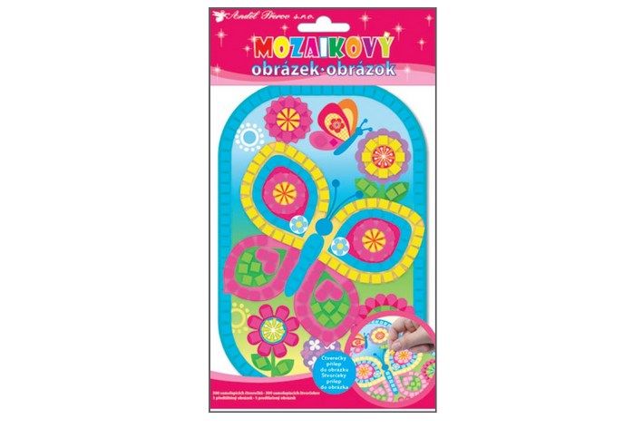 Vytvořte si krásný obrázek motýla o rozměru 14 x 25 cm. Mozaiku můžeme vřele doporučit, ozdoby jsou dostatečně velké, takže se s nimi dětem dobře pracuje, obrázek je vytištěný na tvrdém papíře, takže se nezmačká. Pod dohledem dospělého zvládnou mozaiku i dvouleté děti. Jednotlivé díly mozaiky jsou ve čtyřech blyštivých barvách a nalepují se podle barev.