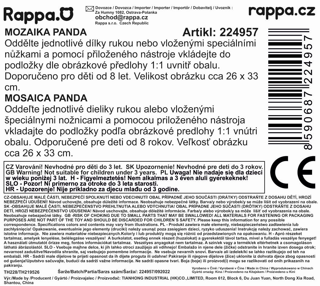 Úžasná mozaika s motivem pandy, to jsou skvěle strávené chvíle plné kreativity a zábavy. Obsahuje nástroje ke snadné manipulaci s jednotlivými dílky a jejich následné vkládání na speciální podložku, která má rozměry 33 x 27 cm. Rozvíjí kreativitu a jemnou motoriku u dětí.