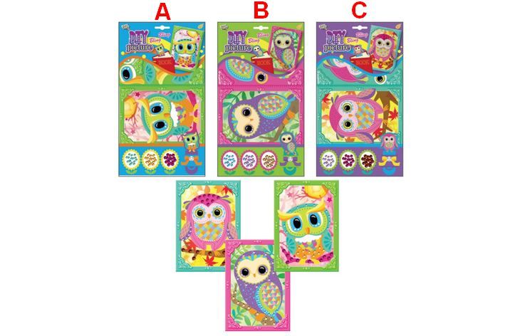Na ně se poté lepí barevné glitry. Hotový obrázek lze postavit do přiloženého stojánku.