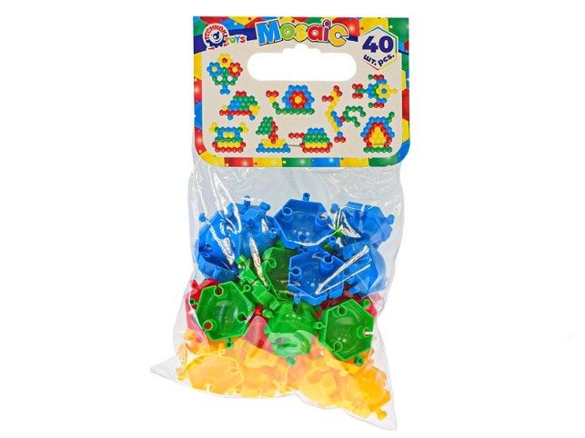 Mozaika je idální zábavou pro děti, rozvíjí jejich kreativitu, logické myšlení a fantazii. Mozaika obsahuje šestihrany v různých barvách. Děti si mohou poskládat různé obrázky. Balení obsahuje 40 ks. Vhodné pro děti od 12 měsíců.
