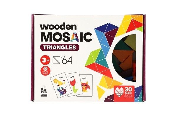 Mozaika/stavebnice dřevo 64 dílků v krabici 21,5x16x6cm