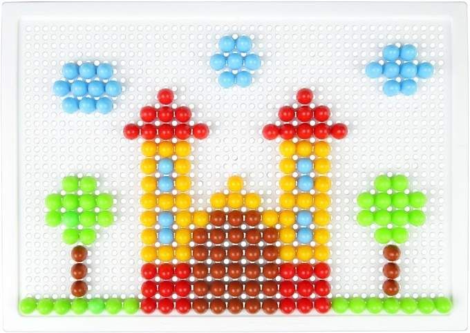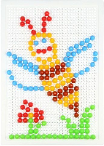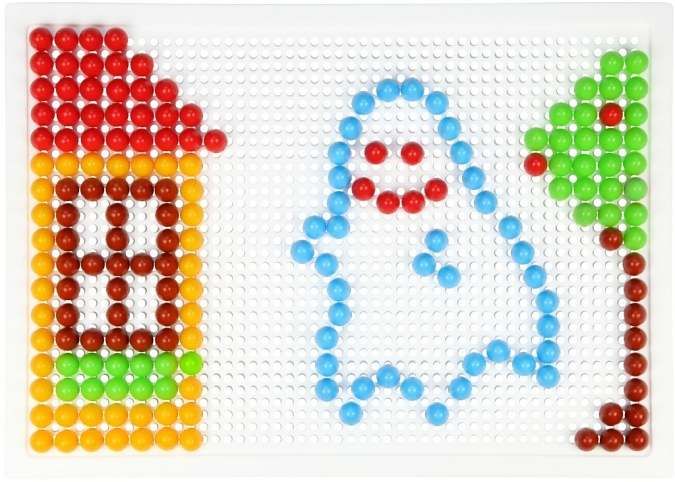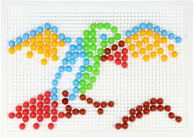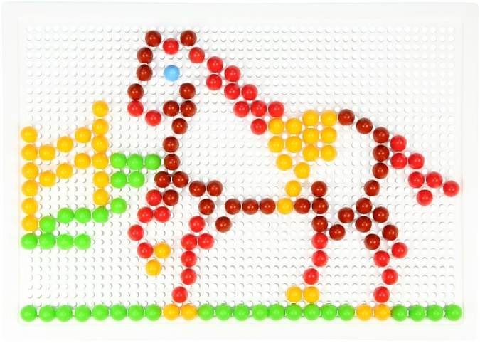 200 kusů hladkých barevných kloboučků o velikosti 10mm balených v plátěném pytlíčku. Velikost děrované desky 28×19,5cm.