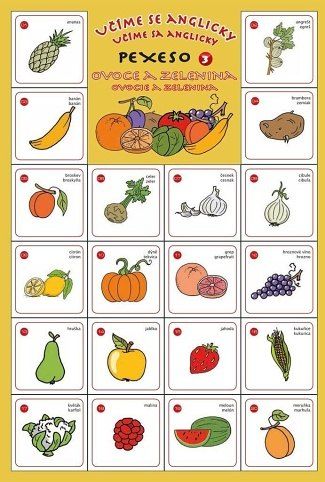 Pexeso Učíme se anglicky Ovoce a zelenina k vystřižení.