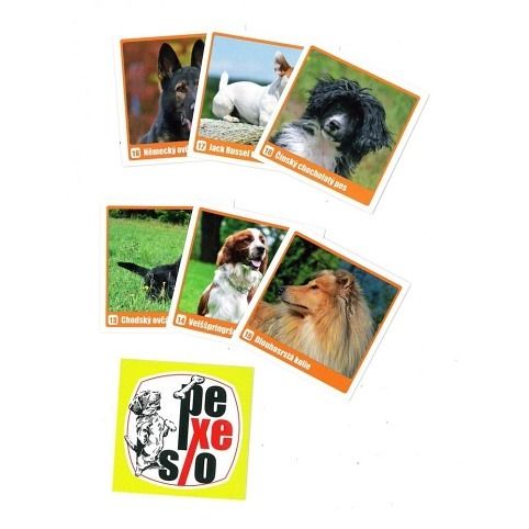Pexeso s motivem Psů. Nastříhané, v praktické krabičce.