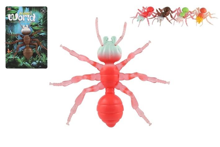 Mravenec antistresový pevné tělo plast/silikon 19x18cm 4 barvy na kartě