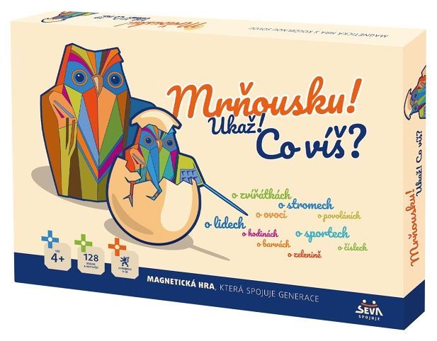 Prověř si své vědomosti zábavnou formou. Budeš chytřejší než moudrá sova? Celkem 128 otázek ze 16 okruhů. Vyber si otázku. Pokud nebudeš znát správnou odpověď, moudrá sova ti ji zodpoví. Magnetická hra.