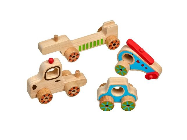 Můj první kamion je dřevěná skládačka pro nejmenší. Malé dítě si může samostatně hrát s kamionem a jeho přívěsem, vrtulníkem nebo malým autíčkem. Po ukončení hry je auto s vrtulníkem třeba poskládat tak, aby je kamion mohl hromadně převézt.