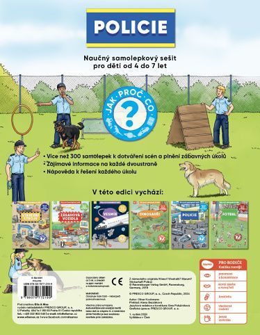 Jak? Proč? Co? V tomhle naučném samolepkovém sešitě pro děti od 4 do 7 let najdete odpovědi snad na všechny zvídavé otázky týkající se práce policistů. Na každé dvoustraně se dočtete spoustu zajímavostí, a navíc máte k dispozici přes 300 samolepek k dotváření scén a plnění zábavných úkolů! Ty zapeklitější vám dají možná trošku zabrat, ale žádný strach – na konci knížky nechybí malá nápověda…