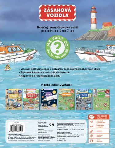 Jak? Proč? Co? V tomhle naučném samolepkovém sešitě pro děti od 4 do 7 let najdete odpovědi snad na všechny zvídavé otázky týkající se různých druhů zásahových vozidel. Na každé dvoustraně se dočtete spoustu zajímavostí, a navíc máte k dispozici přes 300 samolepek k dotváření scén a plnění zábavných úkolů! Ty zapeklitější vám dají možná trošku zabrat, ale žádný strach – na konci knížky nechybí malá nápověda…