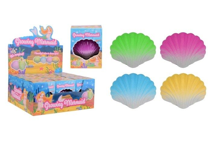 Je to jako kouzlo! Vhoďte mušli do vody a sledujte, jak z ní vyrůstá krásná mořská panna. Dostupné v barvách zelená, růžová, modrá a žlutá.