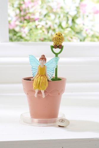Obsah balení: Víla Joy, žlutý ptáček, květináček, rýč, balíček semínek, miska pod květináč, návod.