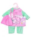 Malým děťátkům se často stává, že se pobryndají a potřebují rychle vyměnit oblečení. A přesně proto je oblečení pro My First Baby Annabell® dostupné hned ve dvou krásných barevných provedeních. Není vůbec jednoduché se rozhodnout, zda panence nejdříve obléct šatičky s tyrkysovými pruhovanými legínami a růžovou čepičkou nebo tyrkysové šatičky s růžovými legínami a tyrkysovou čepičkou. Oba oblečky jsou ozdobeny legračními potisky oveček. Hraní si s panenkou a doplňky podněcuje děti už od jednoho roku k zapojení se do „hry na“ a poskytuje prvotní podněty pro rozvíjení smyslu pro empatii a odpovědnost. Oblečení pro miminko se skládá ze šatiček, legín a čepičky. Je dostupné ve dvou různých barevných provedeních. Součástí je ramínko na šatičky.