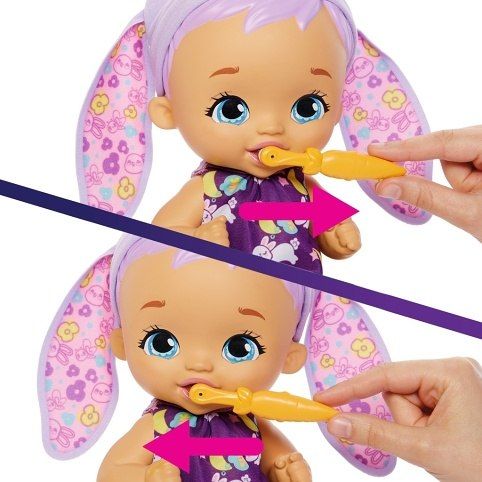 Tyto herní sety panenek My Garden Baby™ nabízí různé způsoby pečující hry! Děti mohou krmit a přebalovat motýlí miminka (stačí naplnit lahvičku vodou, nakrmit miminko a pak vyměnit opakovaně použitelnou plenku). Nebo pomáhat králičím miminkům čistit zuby a sledovat, jak se jejich hlavičky pohybují ze strany na stranu. Miminka motýlků a králíčků My Garden Baby™ mají heboučká křídla a ouška, která se dají zavinout a pak se k nim přitulit!