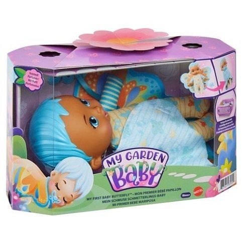 Tyto panenky My Garden Baby™ Moje první miminko (23 cm) jsou jako stvořené pro mazlení! Vyberte si z panenek motýlků nebo zajíčků. Mají měkká tělíčka, heboučká křídla a dlouhá ouška, která se skládají do zavinovačky. Malé děti mohou panenky „konejšit“ přivázanými dudlíky. Tato zahradní miminka mají ideální velikost pro malé ručičky k tulení. Obal se navíc dá složit do postýlky, a tím je péče o miminko zábavnější!
