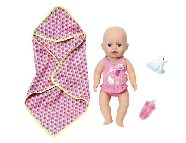 My Little BABY born® Koupací panenka v plavkách obsahuje osušku, gumovou