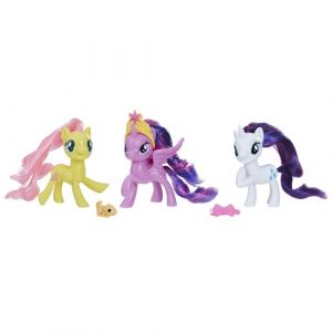 Začněte sbírat postavičky My Little Pony, abyste si mohli zahrát příběhy z kouzelné země Equestria! Tato sada 3 figurek poníků zahrnuje Rarity, Twilight Sparkle a Fluttershy společně se 3 doplňky – vždy jeden pro každou figurku! Pročešte jejich krásné hřívy a oháňky. Každá postava poníka má svůj klasický vzhled a Cutie Mark (značku krásy) a zábavná dobrodružství mohou začít.