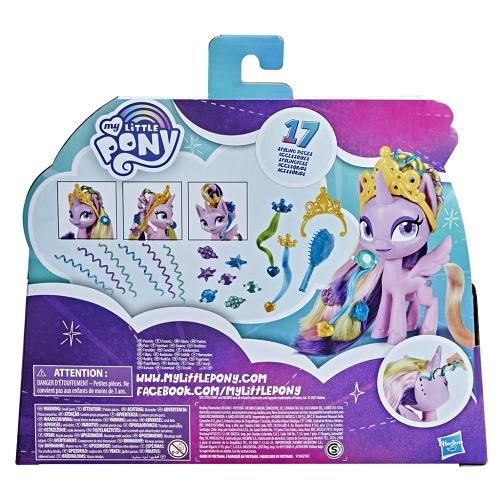 Princezna Cadence je královnou stylu! Její vlasy jsou delší než vlasy jiných 13cm figurek poníků, takže je to ta pravá princezna pro stylizování #makeovergoals. Zahrnuje 17 módních doplňků souvisejících s vlasy, se kterými můžete zkoušet různé styly a barevné příčesky. Výsledné dílo ozdobte sponkami a korunkou princezny. Princezna Cadence je úchvatná a její účes by měl zářit: Vezměte si tuto stylovou princeznu do parády a prozkoumávejte různé módní styly.