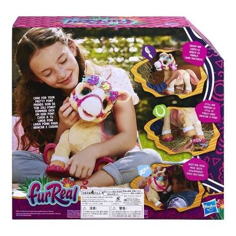 Co kdybyste ze svého plachého miláčka udělali výstavního poníka? U tohoto roztomilého plyšáčka se můžete těšit na více než 80 zvuků a reakcí. Namluví toho opravdu hodně! Mrká očima, hýbe ušima, hlavou i krkem. Reaguje, když ho pohladíte po zádech či tváři, dáte mu pusu na nos nebo ho nakrmíte. Můžete ho také vyzdobit modrou stuhou, která mu bude náramně slušet! Mezi doplňky v ceně patří pamlsek/kartáč 2 v 1, čtyři podkovy, stylové květiny a