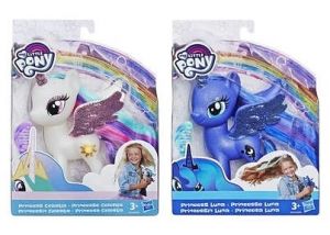 Představujte si zábavné příběhy vedle magických spoluvládců Equestrie s těmito nádheně třpytivými postavami princezen Luny a Celestie (každá se prodává samostatně). Princezny mají krásné rohy a křídla, která jiskří a lesknou se třpytkami! Děti mohou použít hřebínek ke kartáčování dlouhých hřív a ocasů. Jejich barevné vlasy a třpytivé prvky dávají královské princezně Celestii a princezně Luně nádherný, magický vzhled.