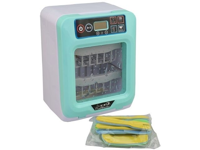 Navařeno, snězeno a kdo umyje nádobí? Pojďme na to moderně a efektně. Kdo pomůže lépe než myčka nádobí na baterie, se světlem a zvukem. Vložte nádobí do myčky a zvolte si jeden ze čtyř programů mytí. Teď už stačí jen počkat a je hotovo. Umyto! Skvělý pomocník do každé kuchyně. Balení obsahuje myčku a nádobí (3 x talířek, 3 x vidlička, 3 x nůž, 3 x lžička). Napájení: 2 x AA 1,5 V baterie ( nejsou součástí balení ). Rozměr myčky: 17,5 x 15 x 22,7 cmMaterál: plastVhodné pro děti od 3 let.