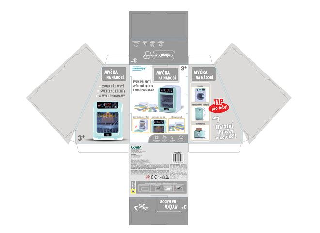 Večeře byla výborná! Ale ten nepořádek v kuchyni! Hromada špinavého nádobí! Nechce se ti vše umývat ručně? Pořiď si myčku se světelnými a zvukovými efekty a vše bude bez práce! Dej nádobí do myčky, zvol si ze 4 programů mytí nebo si nastav potřebný čas a je to! Teď si můžeš dát čaj a odpočinout!