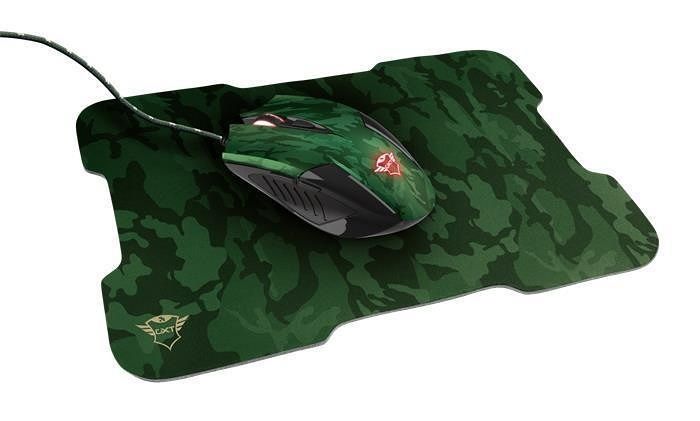 Myš "GXT781 Rixa", vojenský vzor, drátová, optická, USB, herní, s podložkou, TRUST 23611