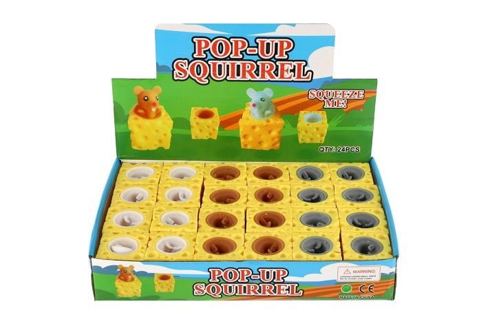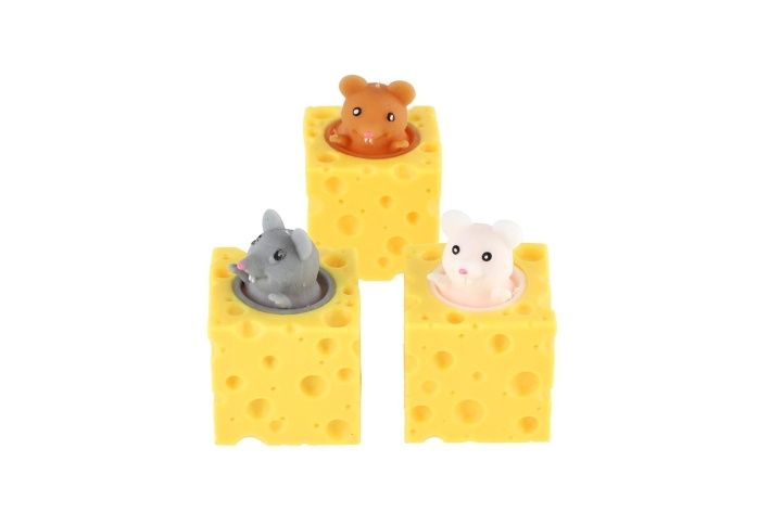 Antistresová myška schovaná v sýru pro každou těžkou nebo napjatou chvíli. Zmáčkni sýr a vykoukne na tebe myška.